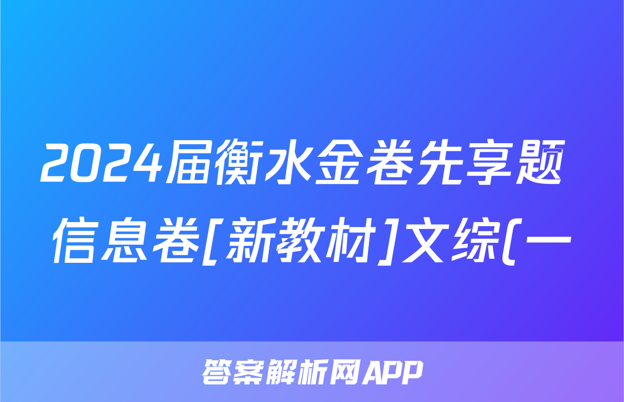 2024届衡水金卷先享题 信息卷[新教材]文综(一)1答案,目前2025-2026衡水金卷答案网已经汇总了2024届衡水金卷先享题 信息卷[新教材]文综(一)1答案的各科答案和试卷,获取更多{{papers_name}}答案解析,请在关注本站。