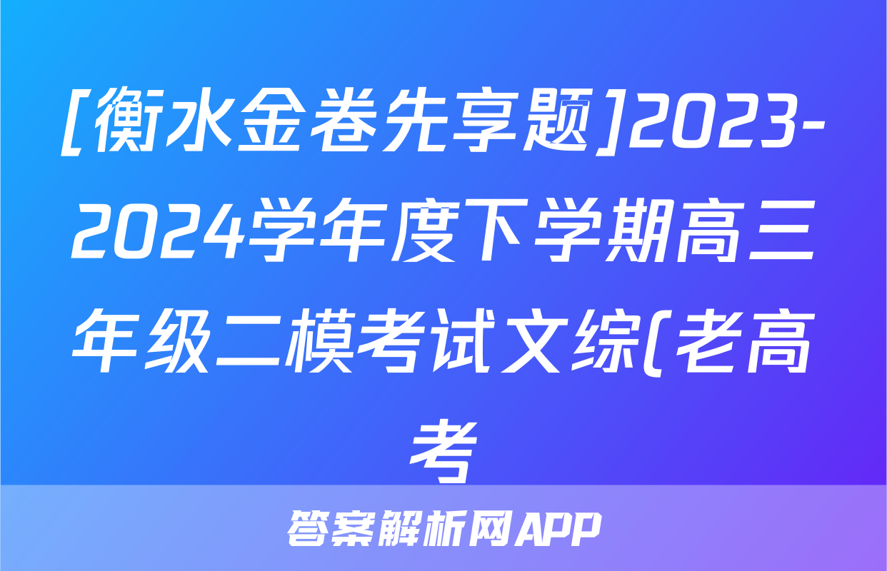 [衡水金卷先享题]2023-2024学年度下学期高三年级二模考试文综(老高考)试题,目前2025-2026衡水金卷答案网已经汇总了[衡水金卷先享题]2023-2024学年度下学期高三年级二模考试文综(老高考)试题的各科答案和试卷,获取更多{{papers_name}}答案解析,请在关注本站。