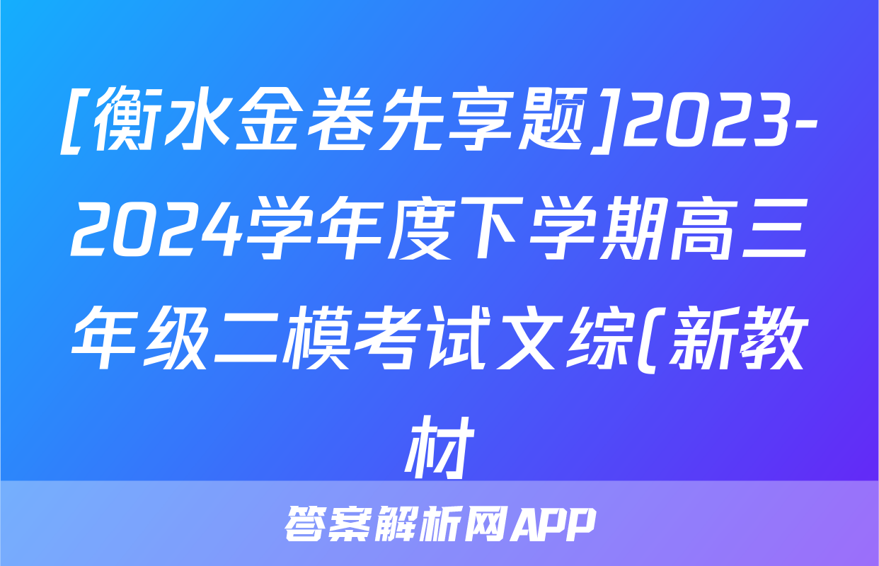 [衡水金卷先享题]2023-2024学年度下学期高三年级二模考试文综(新教材)试题,目前2025-2026衡水金卷答案网已经汇总了[衡水金卷先享题]2023-2024学年度下学期高三年级二模考试文综(新教材)试题的各科答案和试卷,获取更多{{papers_name}}答案解析,请在关注本站。