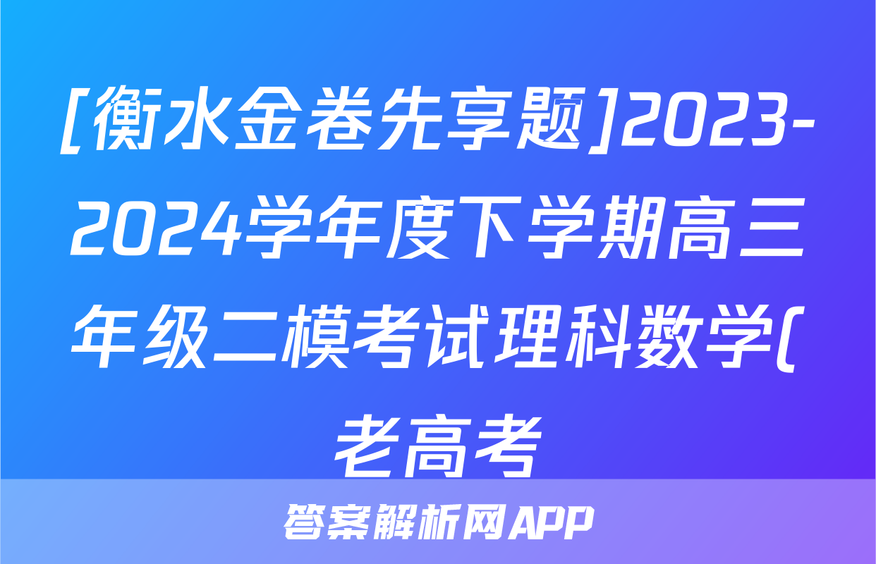 [衡水金卷先享题]2023-2024学年度下学期高三年级二模考试理科数学(老高考)试题,目前2025-2026衡水金卷答案网已经汇总了[衡水金卷先享题]2023-2024学年度下学期高三年级二模考试理科数学(老高考)试题的各科答案和试卷,获取更多{{papers_name}}答案解析,请在关注本站。