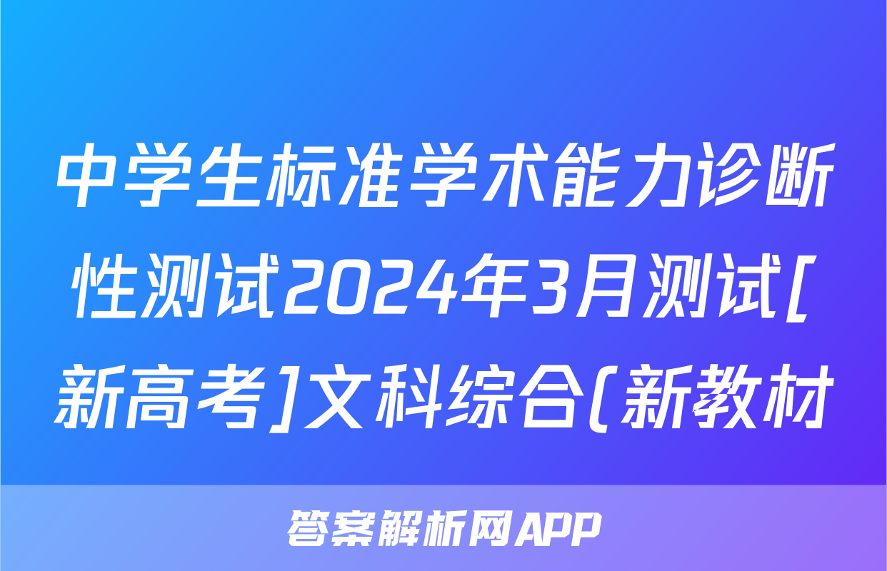 中学生标准学术能力诊断性测试2024年3月测试[新高考]文科综合(新教材)试题,目前2025-2026衡水金卷答案网已经汇总了中学生标准学术能力诊断性测试2024年3月测试[新高考]文科综合(新教材)试题的各科答案和试卷,获取更多{{papers_name}}答案解析,请在关注本站。