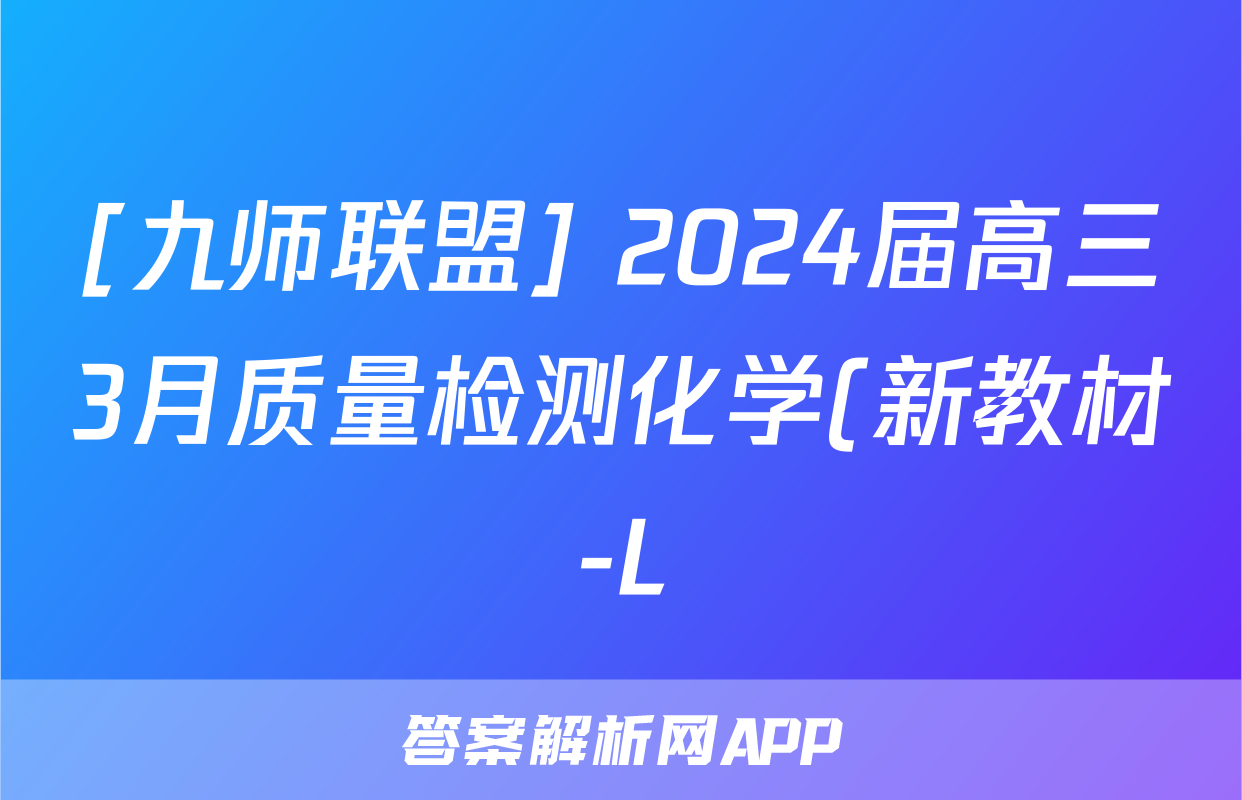 [九师联盟] 2024届高三3月质量检测化学(新教材-L)答案,目前2025-2026衡水金卷答案网已经汇总了[九师联盟] 2024届高三3月质量检测化学(新教材-L)答案的各科答案和试卷,获取更多{{papers_name}}答案解析,请在关注本站。
