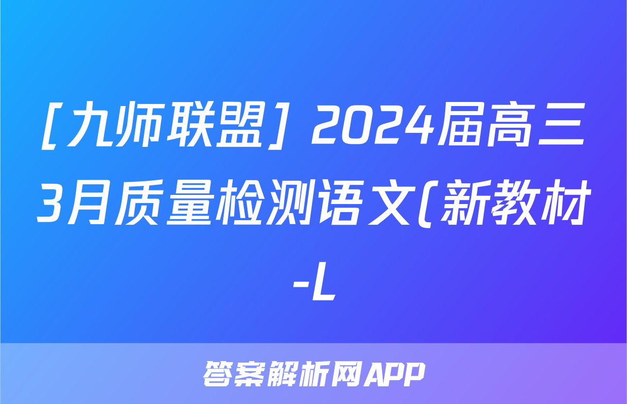 [九师联盟] 2024届高三3月质量检测语文(新教材-L)答案,目前2025-2026衡水金卷答案网已经汇总了[九师联盟] 2024届高三3月质量检测语文(新教材-L)答案的各科答案和试卷,获取更多{{papers_name}}答案解析,请在关注本站。