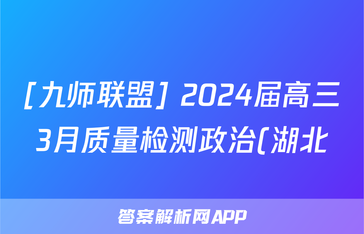 [九师联盟] 2024届高三3月质量检测政治(湖北)答案,目前2025-2026衡水金卷答案网已经汇总了[九师联盟] 2024届高三3月质量检测政治(湖北)答案的各科答案和试卷,获取更多{{papers_name}}答案解析,请在关注本站。