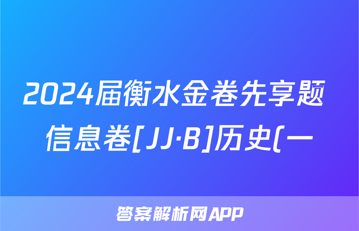 2024届衡水金卷先享题 信息卷[JJ·B]历史(一)1答案,目前2025-2026衡水金卷答案网已经汇总了2024届衡水金卷先享题 信息卷[JJ·B]历史(一)1答案的各科答案和试卷,获取更多{{papers_name}}答案解析,请在关注本站。