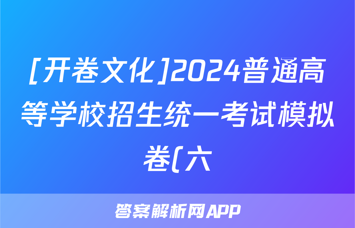[开卷文化]2024普通高等学校招生统一考试模拟卷(六)6化学XN试题,目前2025-2026衡水金卷答案网已经汇总了[开卷文化]2024普通高等学校招生统一考试模拟卷(六)6化学XN试题的各科答案和试卷,获取更多{{papers_name}}答案解析,请在关注本站。