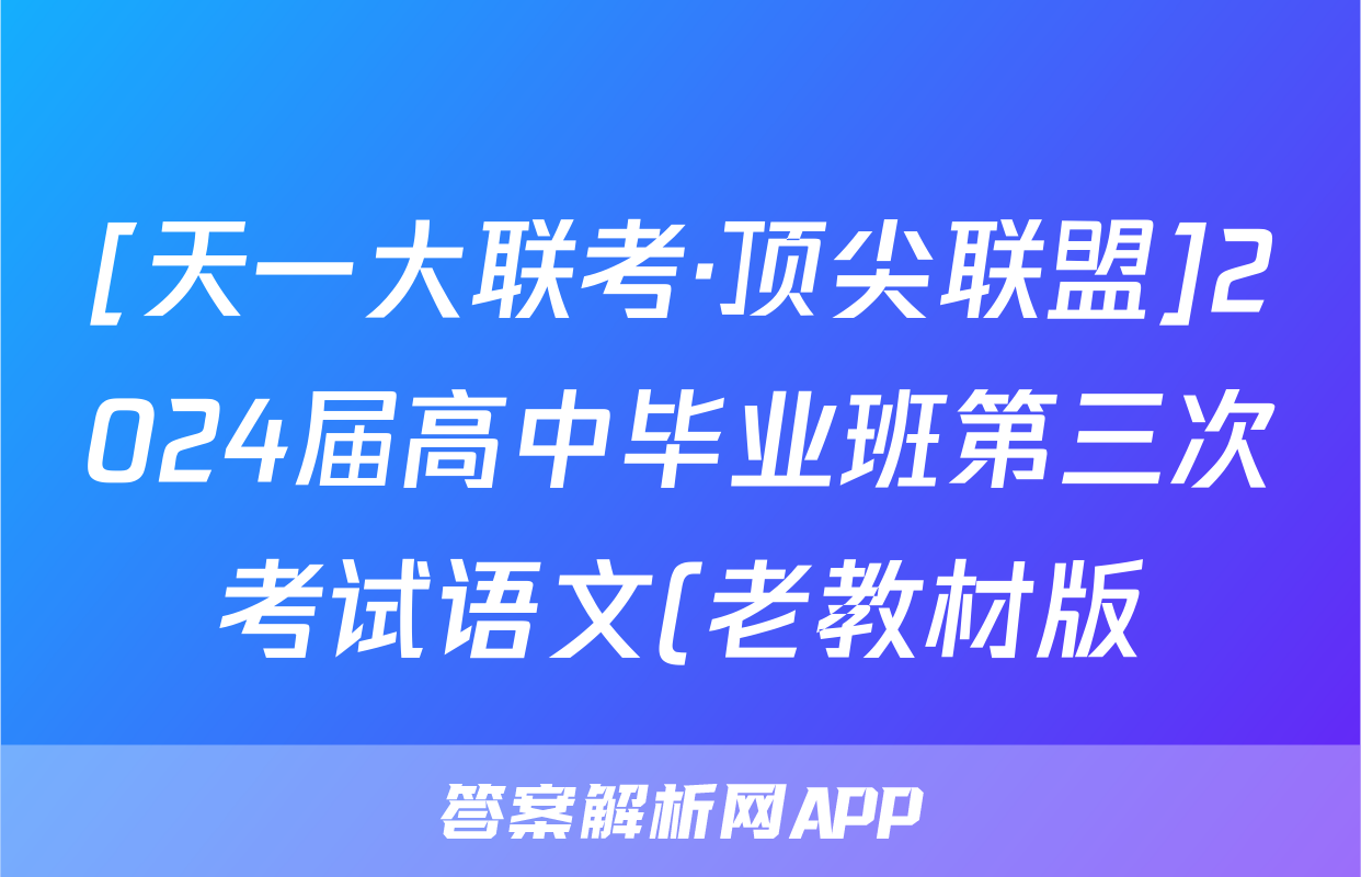 [天一大联考·顶尖联盟]2024届高中毕业班第三次考试语文(老教材版)试题,目前2025-2026衡水金卷答案网已经汇总了[天一大联考·顶尖联盟]2024届高中毕业班第三次考试语文(老教材版)试题的各科答案和试卷,获取更多{{papers_name}}答案解析,请在关注本站。