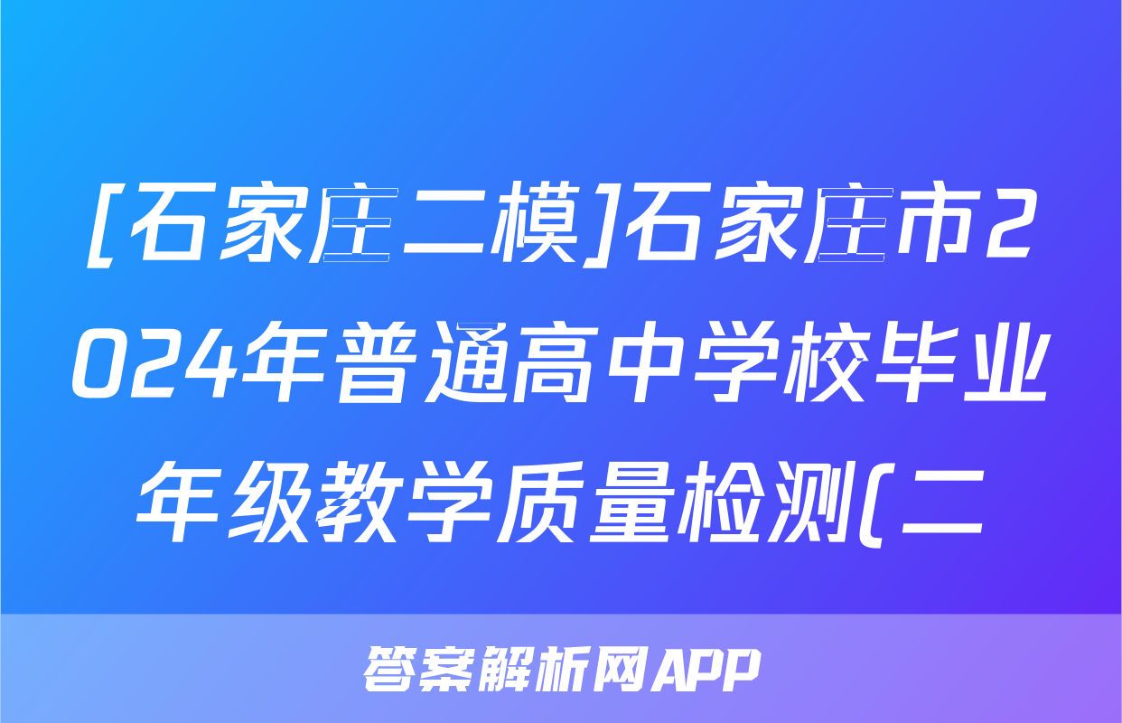 [石家庄二模]石家庄市2024年普通高中学校毕业年级教学质量检测(二)数学答案,目前2025-2026衡水金卷答案网已经汇总了[石家庄二模]石家庄市2024年普通高中学校毕业年级教学质量检测(二)数学答案的各科答案和试卷,获取更多{{papers_name}}答案解析,请在关注本站。