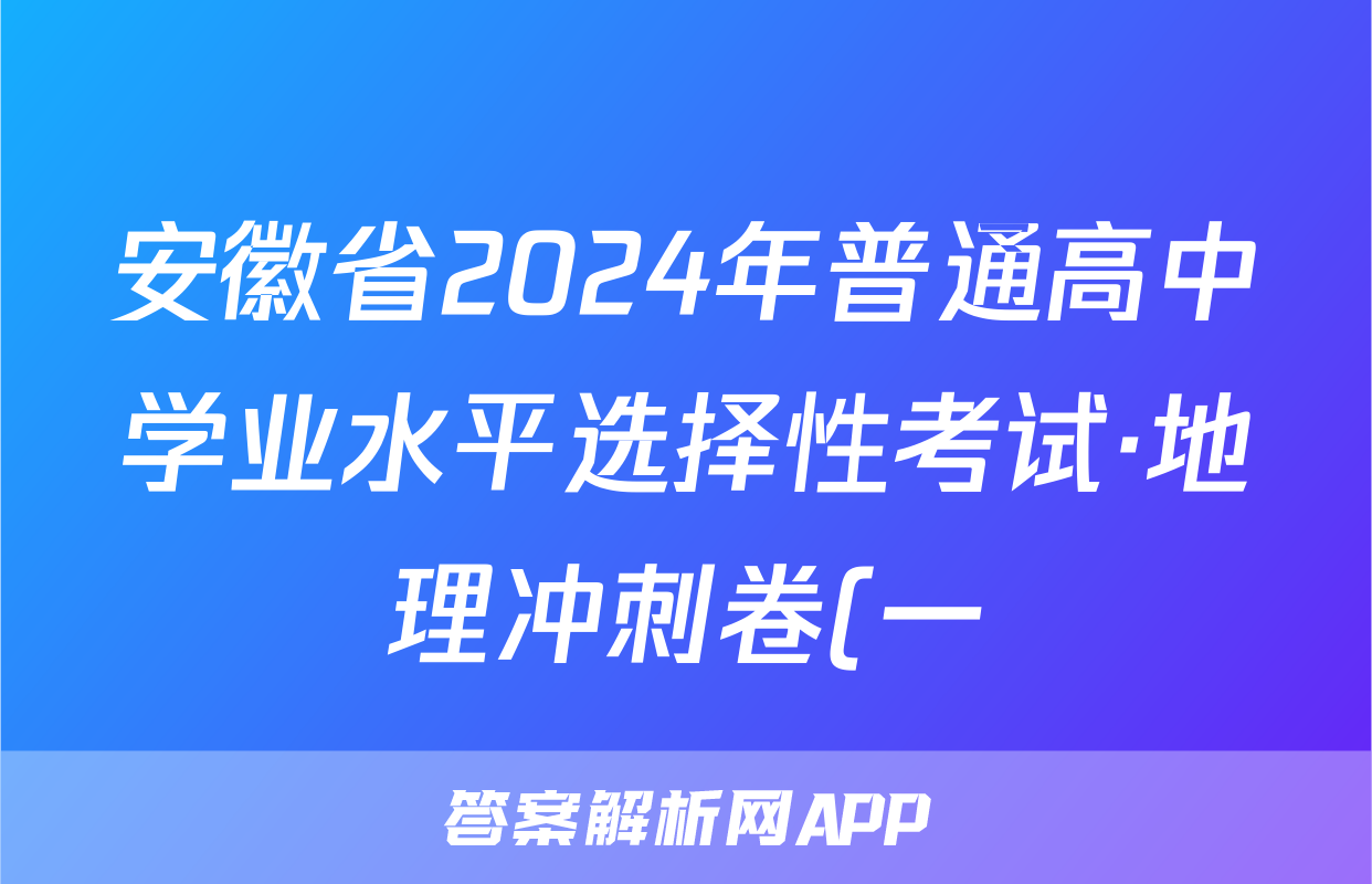 安徽省2024年普通高中学业水平选择性考试·地理冲刺卷(一)1[24·(新高考)CCJ·地理·AH]试题,目前2025-2026衡水金卷答案网已经汇总了安徽省2024年普通高中学业水平选择性考试·地理冲刺卷(一)1[24·(新高考)CCJ·地理·AH]试题的各科答案和试卷,获取更多{{papers_name}}答案解析,请在关注本站。