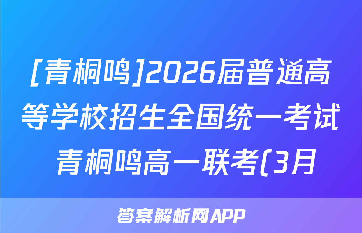 [青桐鸣]2026届普通高等学校招生全国统一考试 青桐鸣高一联考(3月)语文试题,目前2025-2026衡水金卷答案网已经汇总了[青桐鸣]2026届普通高等学校招生全国统一考试 青桐鸣高一联考(3月)语文试题的各科答案和试卷,获取更多{{papers_name}}答案解析,请在关注本站。