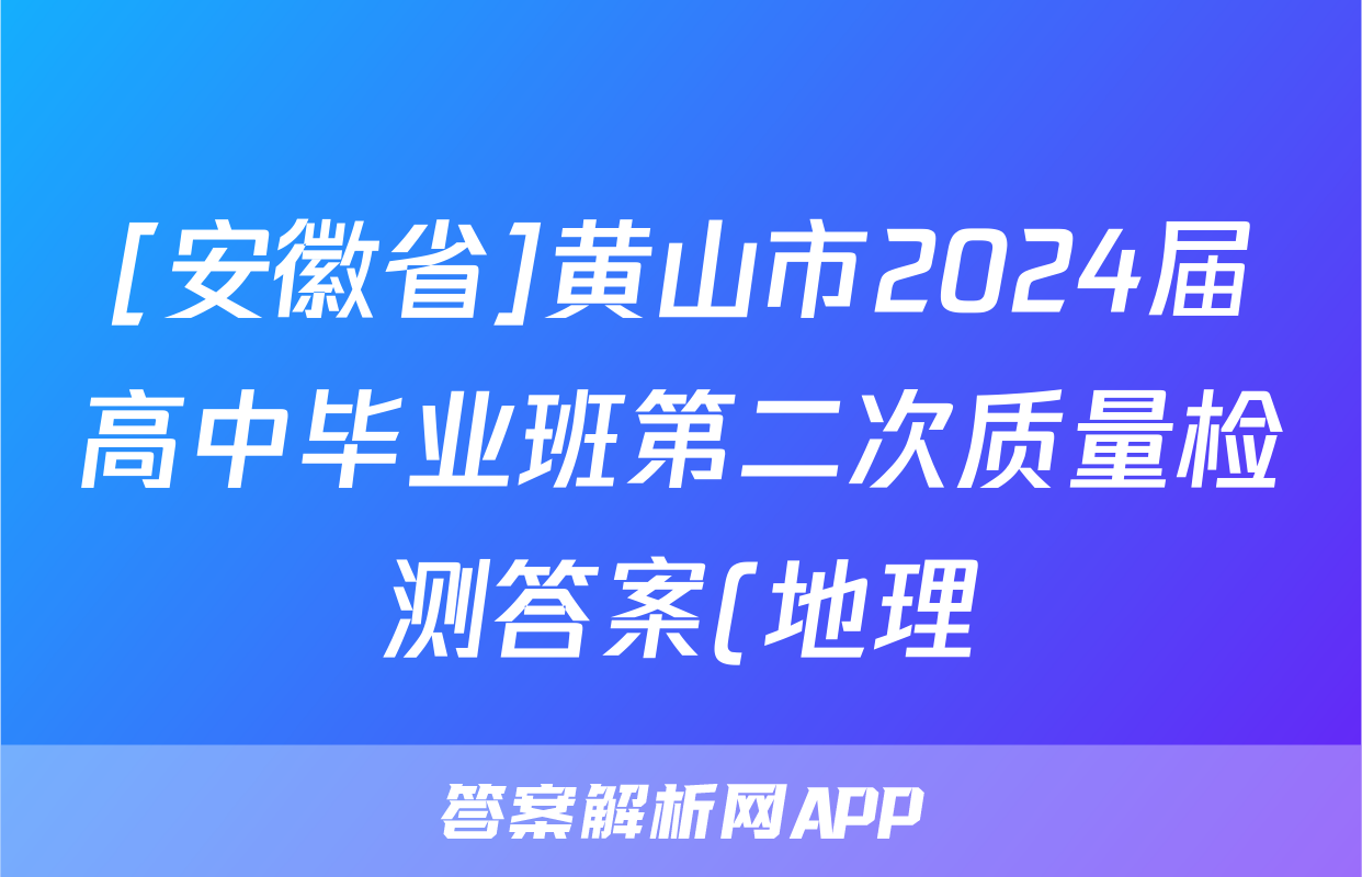 [安徽省]黄山市2024届高中毕业班第二次质量检测答案(地理),目前2025-2026衡水金卷答案网已经汇总了[安徽省]黄山市2024届高中毕业班第二次质量检测答案(地理)的各科答案和试卷,获取更多{{papers_name}}答案解析,请在关注本站。