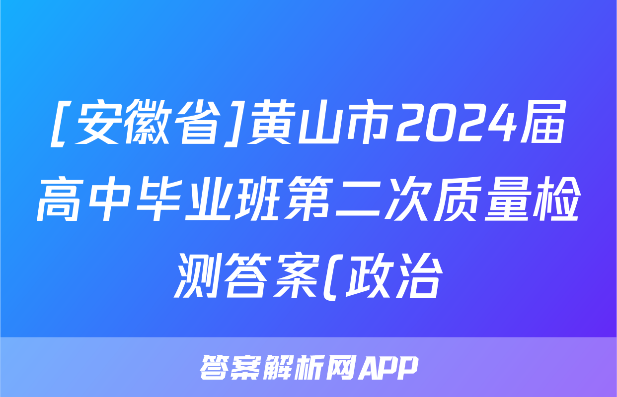 [安徽省]黄山市2024届高中毕业班第二次质量检测答案(政治),目前2025-2026衡水金卷答案网已经汇总了[安徽省]黄山市2024届高中毕业班第二次质量检测答案(政治)的各科答案和试卷,获取更多{{papers_name}}答案解析,请在关注本站。
