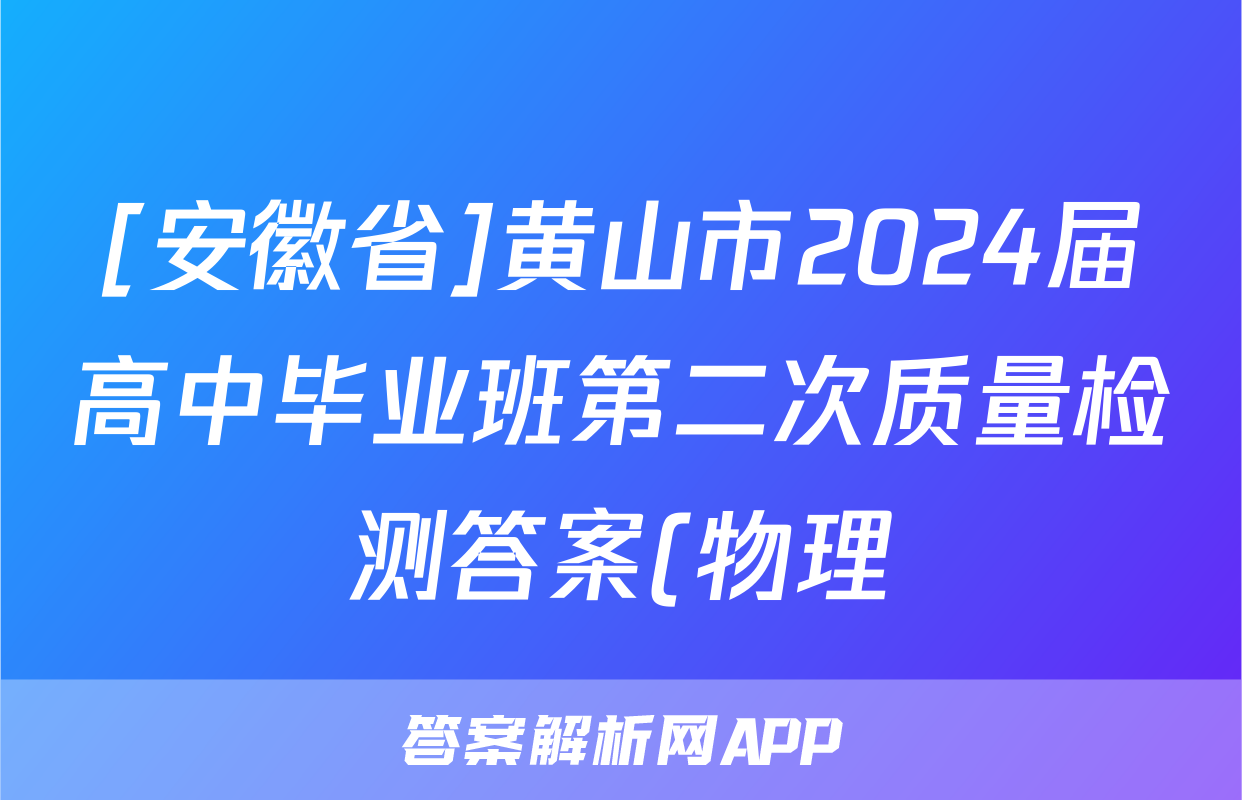 [安徽省]黄山市2024届高中毕业班第二次质量检测答案(物理),目前2025-2026衡水金卷答案网已经汇总了[安徽省]黄山市2024届高中毕业班第二次质量检测答案(物理)的各科答案和试卷,获取更多{{papers_name}}答案解析,请在关注本站。