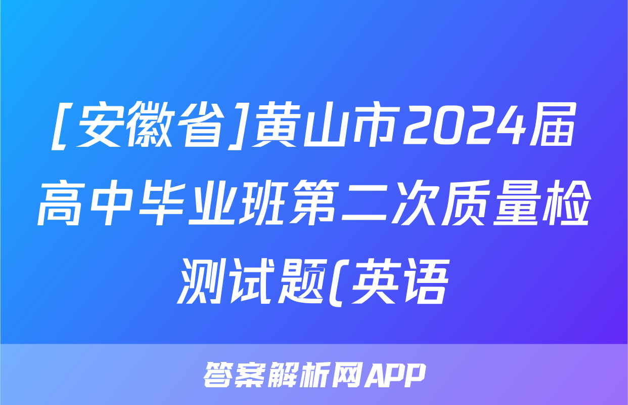 [安徽省]黄山市2024届高中毕业班第二次质量检测试题(英语),目前2025-2026衡水金卷答案网已经汇总了[安徽省]黄山市2024届高中毕业班第二次质量检测试题(英语)的各科答案和试卷,获取更多{{papers_name}}答案解析,请在关注本站。
