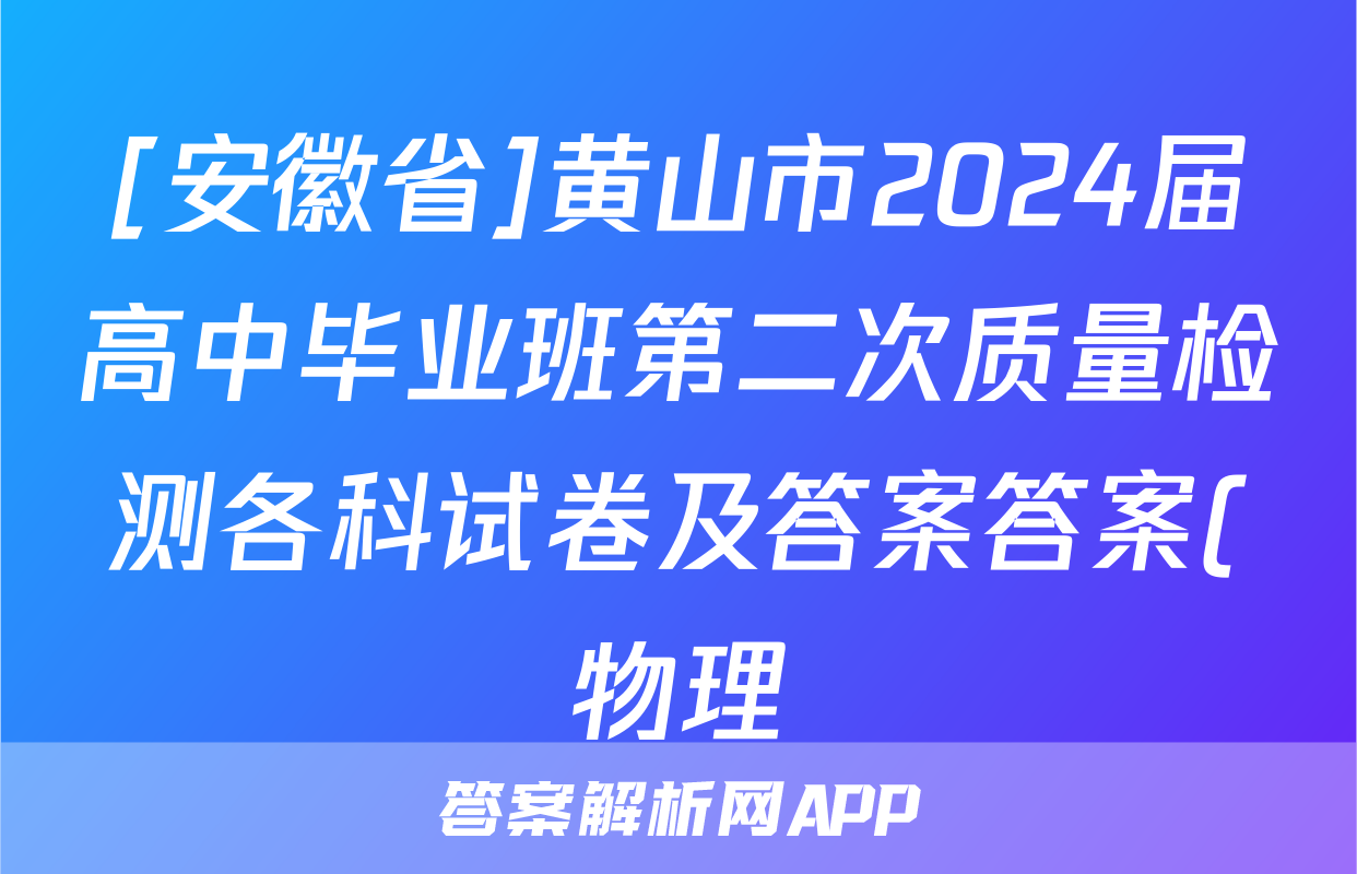 [安徽省]黄山市2024届高中毕业班第二次质量检测各科试卷及答案答案(物理),目前2025-2026衡水金卷答案网已经汇总了[安徽省]黄山市2024届高中毕业班第二次质量检测各科试卷及答案答案(物理)的各科答案和试卷,获取更多{{papers_name}}答案解析,请在关注本站。