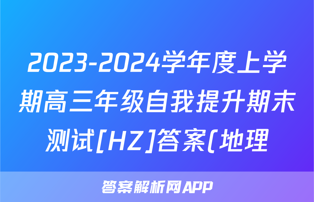 2023-2024学年度上学期高三年级自我提升期末测试[HZ]答案(地理),目前2025-2026衡水金卷答案网已经汇总了2023-2024学年度上学期高三年级自我提升期末测试[HZ]答案(地理)的各科答案和试卷,获取更多{{papers_name}}答案解析,请在关注本站。
