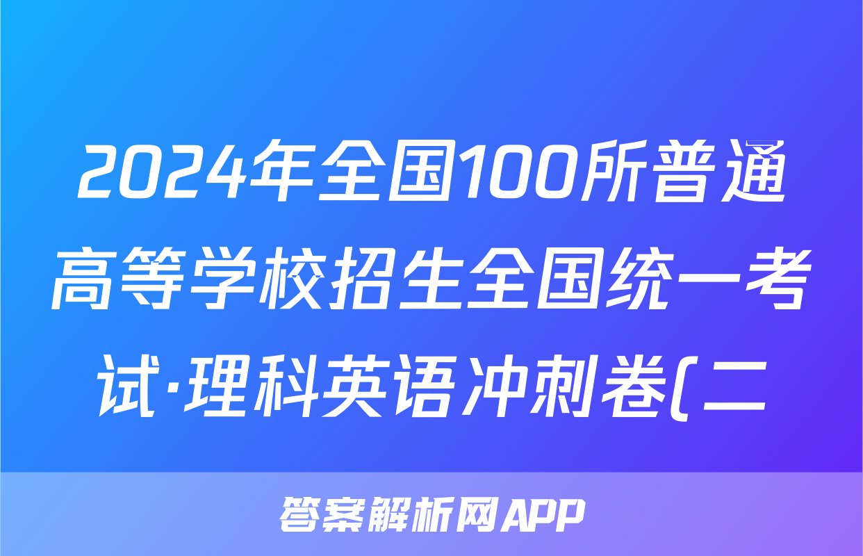 2024年全国100所普通高等学校招生全国统一考试·理科英语冲刺卷(二)2[24·CCJ·英语理科·Y]试题,目前2025-2026衡水金卷答案网已经汇总了2024年全国100所普通高等学校招生全国统一考试·理科英语冲刺卷(二)2[24·CCJ·英语理科·Y]试题的各科答案和试卷,获取更多{{papers_name}}答案解析,请在关注本站。