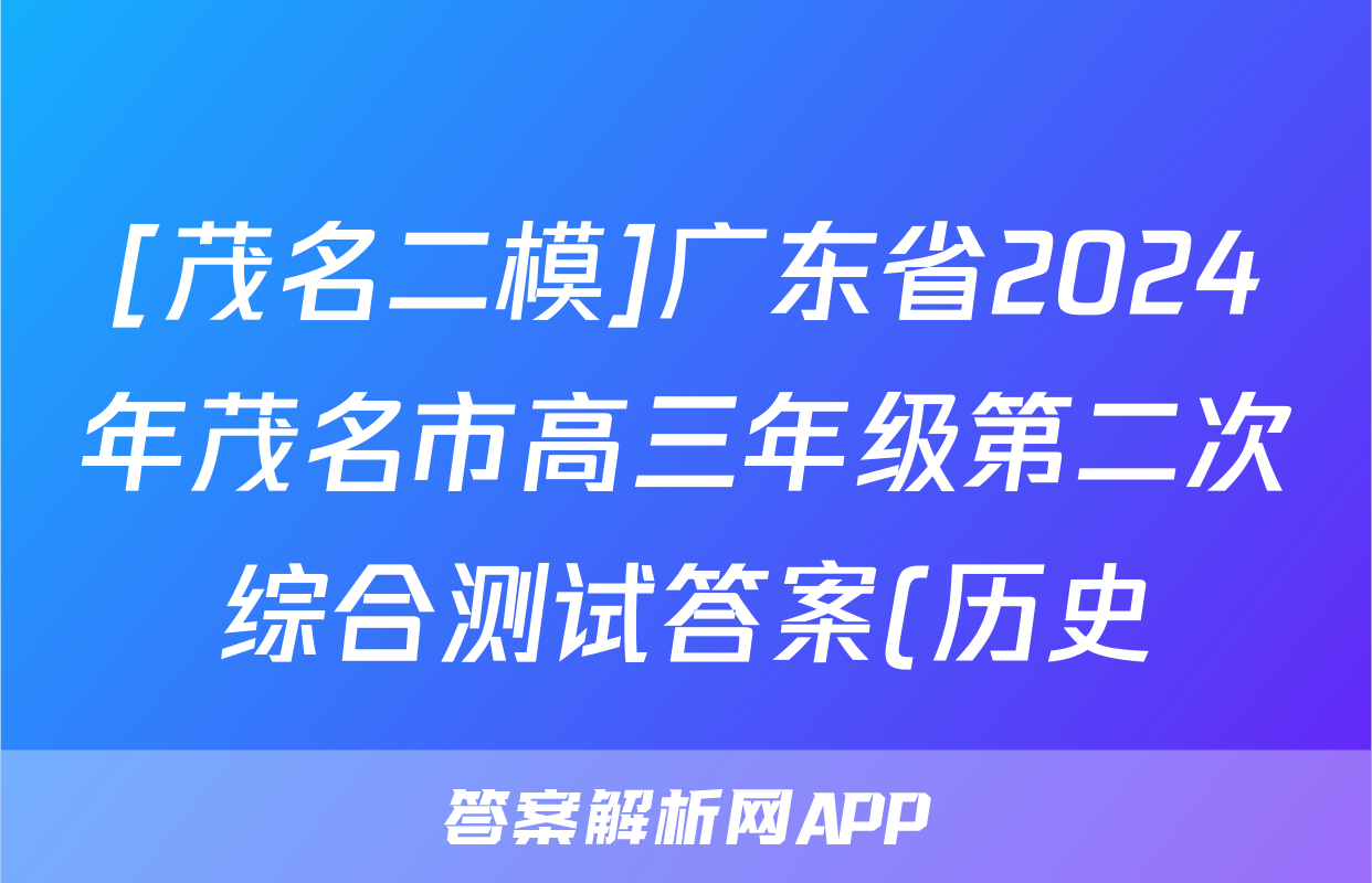 [茂名二模]广东省2024年茂名市高三年级第二次综合测试答案(历史),目前2025-2026衡水金卷答案网已经汇总了[茂名二模]广东省2024年茂名市高三年级第二次综合测试答案(历史)的各科答案和试卷,获取更多{{papers_name}}答案解析,请在关注本站。