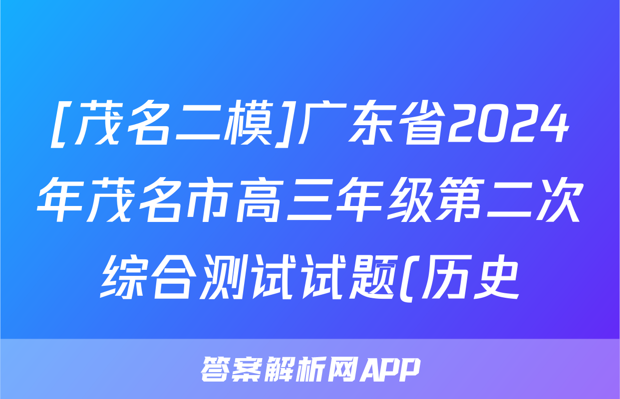 [茂名二模]广东省2024年茂名市高三年级第二次综合测试试题(历史),目前2025-2026衡水金卷答案网已经汇总了[茂名二模]广东省2024年茂名市高三年级第二次综合测试试题(历史)的各科答案和试卷,获取更多{{papers_name}}答案解析,请在关注本站。