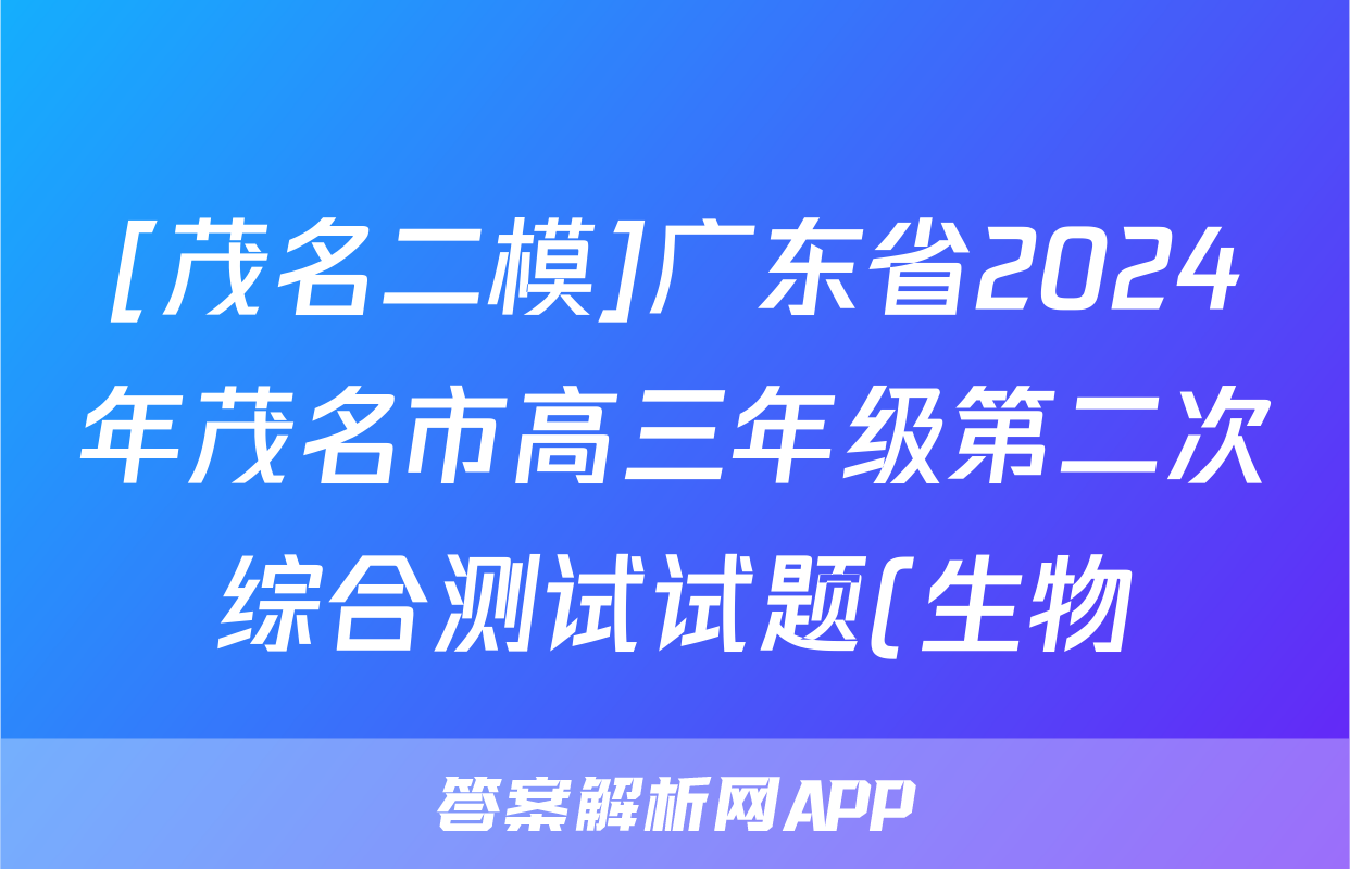 [茂名二模]广东省2024年茂名市高三年级第二次综合测试试题(生物),目前2025-2026衡水金卷答案网已经汇总了[茂名二模]广东省2024年茂名市高三年级第二次综合测试试题(生物)的各科答案和试卷,获取更多{{papers_name}}答案解析,请在关注本站。