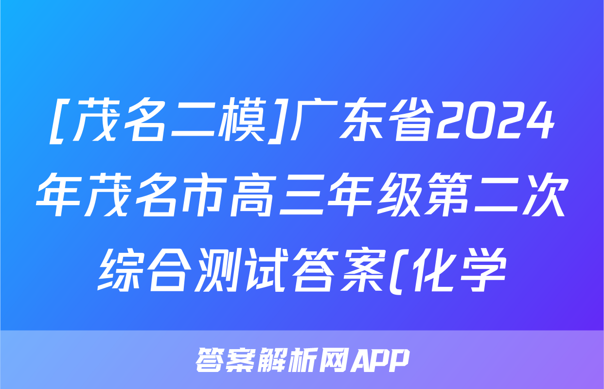[茂名二模]广东省2024年茂名市高三年级第二次综合测试答案(化学),目前2025-2026衡水金卷答案网已经汇总了[茂名二模]广东省2024年茂名市高三年级第二次综合测试答案(化学)的各科答案和试卷,获取更多{{papers_name}}答案解析,请在关注本站。