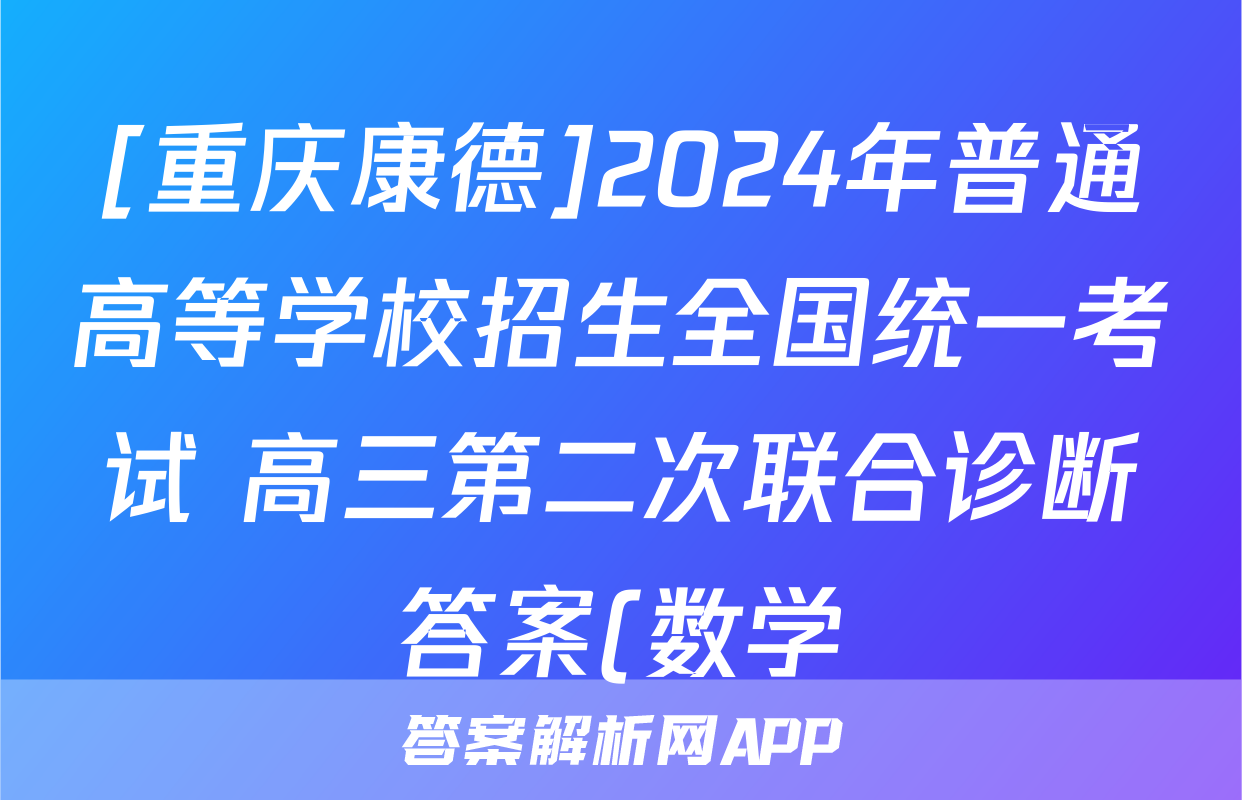 [重庆康德]2024年普通高等学校招生全国统一考试 高三第二次联合诊断答案(数学),目前2025-2026衡水金卷答案网已经汇总了[重庆康德]2024年普通高等学校招生全国统一考试 高三第二次联合诊断答案(数学)的各科答案和试卷,获取更多{{papers_name}}答案解析,请在关注本站。
