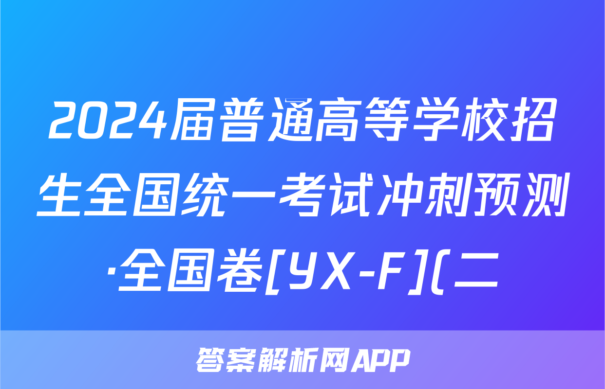 2024届普通高等学校招生全国统一考试冲刺预测·全国卷[YX-F](二)2答案(化学),目前2025-2026衡水金卷答案网已经汇总了2024届普通高等学校招生全国统一考试冲刺预测·全国卷[YX-F](二)2答案(化学)的各科答案和试卷,获取更多{{papers_name}}答案解析,请在关注本站。