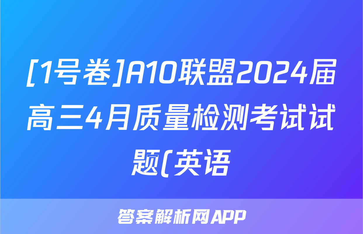 [1号卷]A10联盟2024届高三4月质量检测考试试题(英语),目前2025-2026衡水金卷答案网已经汇总了[1号卷]A10联盟2024届高三4月质量检测考试试题(英语)的各科答案和试卷,获取更多{{papers_name}}答案解析,请在关注本站。