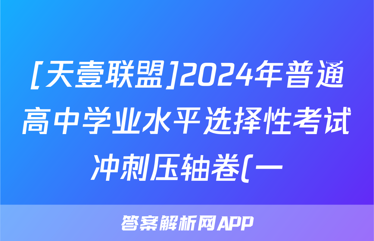 [天壹联盟]2024年普通高中学业水平选择性考试冲刺压轴卷(一)1试题(生物),目前2025-2026衡水金卷答案网已经汇总了[天壹联盟]2024年普通高中学业水平选择性考试冲刺压轴卷(一)1试题(生物)的各科答案和试卷,获取更多{{papers_name}}答案解析,请在关注本站。