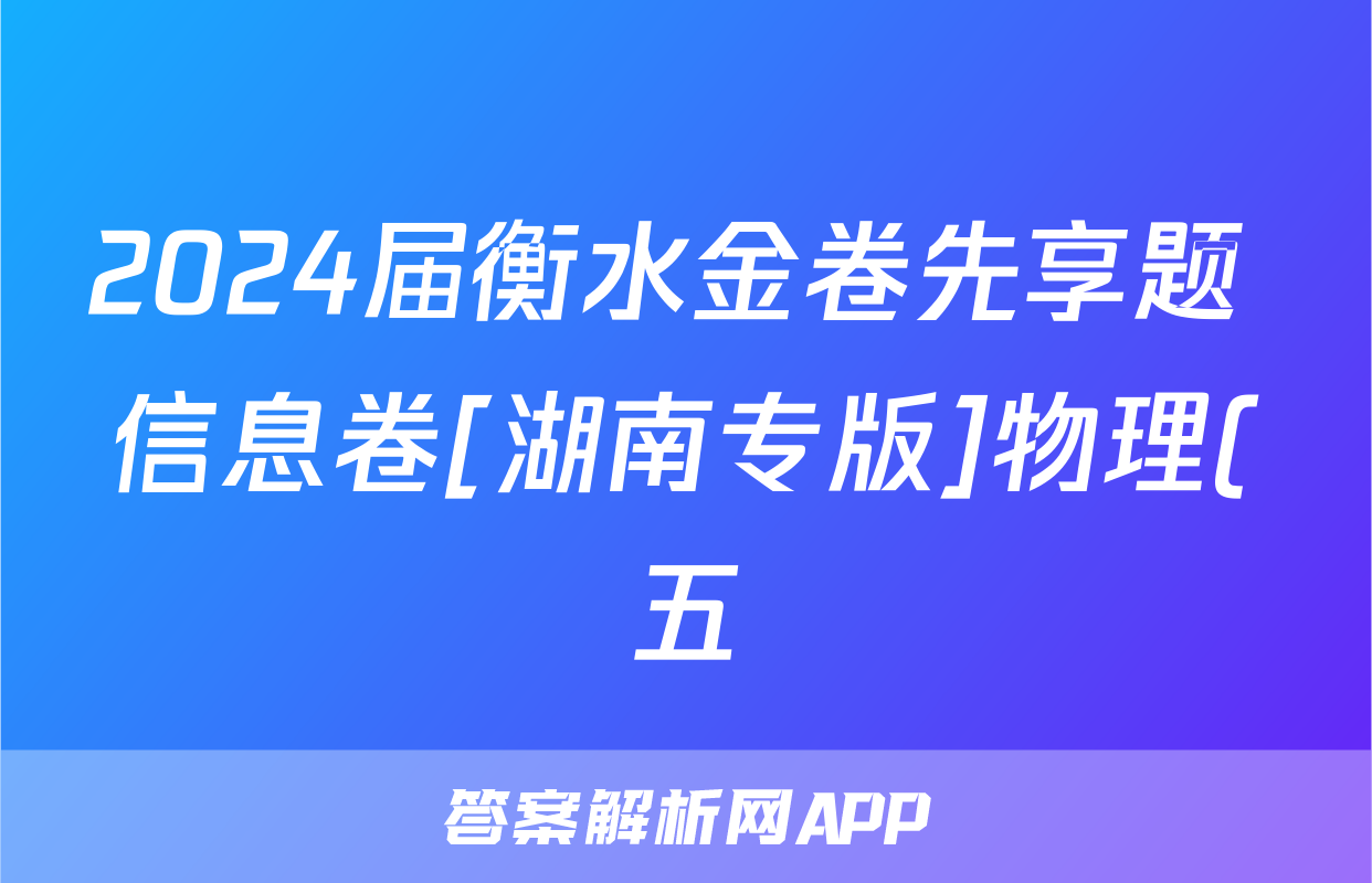 2024届衡水金卷先享题 信息卷[湖南专版]物理(五)5试题,目前2025-2026衡水金卷答案网已经汇总了2024届衡水金卷先享题 信息卷[湖南专版]物理(五)5试题的各科答案和试卷,获取更多{{papers_name}}答案解析,请在关注本站。