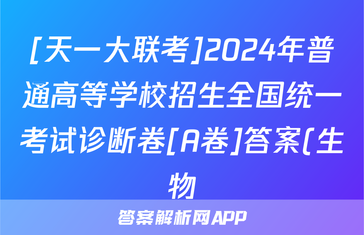 [天一大联考]2024年普通高等学校招生全国统一考试诊断卷[A卷]答案(生物),目前2025-2026衡水金卷答案网已经汇总了[天一大联考]2024年普通高等学校招生全国统一考试诊断卷[A卷]答案(生物)的各科答案和试卷,获取更多{{papers_name}}答案解析,请在关注本站。