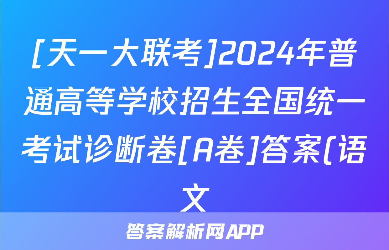 [天一大联考]2024年普通高等学校招生全国统一考试诊断卷[A卷]答案(语文),目前2025-2026衡水金卷答案网已经汇总了[天一大联考]2024年普通高等学校招生全国统一考试诊断卷[A卷]答案(语文)的各科答案和试卷,获取更多{{papers_name}}答案解析,请在关注本站。