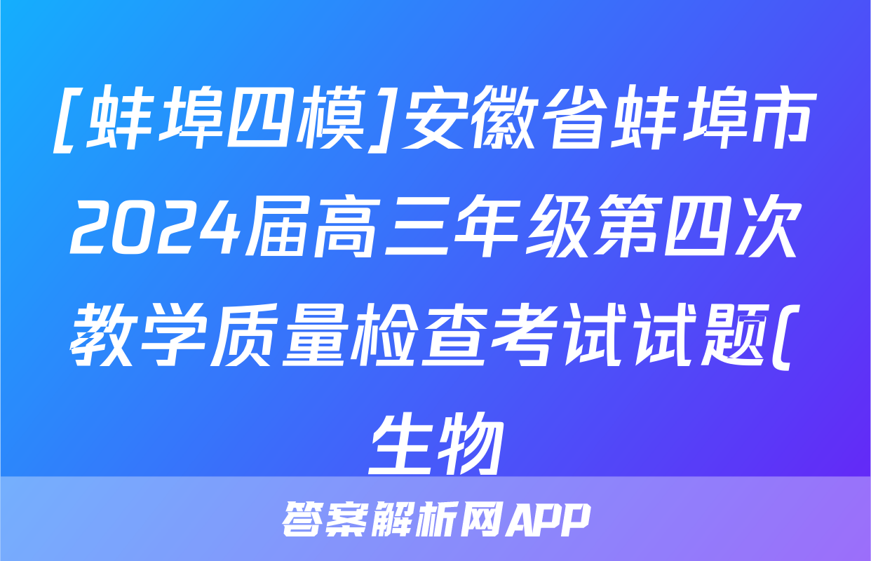 [蚌埠四模]安徽省蚌埠市2024届高三年级第四次教学质量检查考试试题(生物),目前2025-2026衡水金卷答案网已经汇总了[蚌埠四模]安徽省蚌埠市2024届高三年级第四次教学质量检查考试试题(生物)的各科答案和试卷,获取更多{{papers_name}}答案解析,请在关注本站。