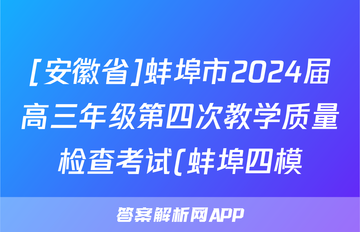 [安徽省]蚌埠市2024届高三年级第四次教学质量检查考试(蚌埠四模)试题(语文),目前2025-2026衡水金卷答案网已经汇总了[安徽省]蚌埠市2024届高三年级第四次教学质量检查考试(蚌埠四模)试题(语文)的各科答案和试卷,获取更多{{papers_name}}答案解析,请在关注本站。