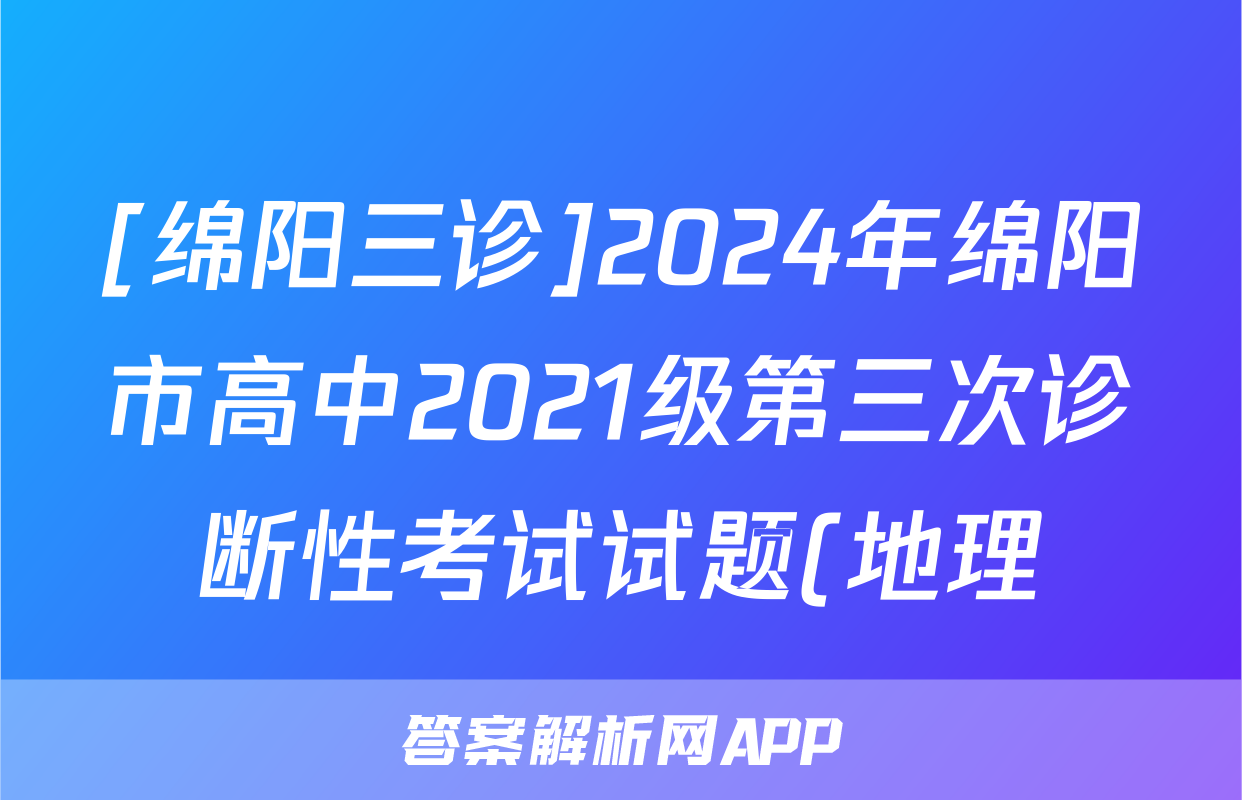 [绵阳三诊]2024年绵阳市高中2021级第三次诊断性考试试题(地理),目前2025-2026衡水金卷答案网已经汇总了[绵阳三诊]2024年绵阳市高中2021级第三次诊断性考试试题(地理)的各科答案和试卷,获取更多{{papers_name}}答案解析,请在关注本站。