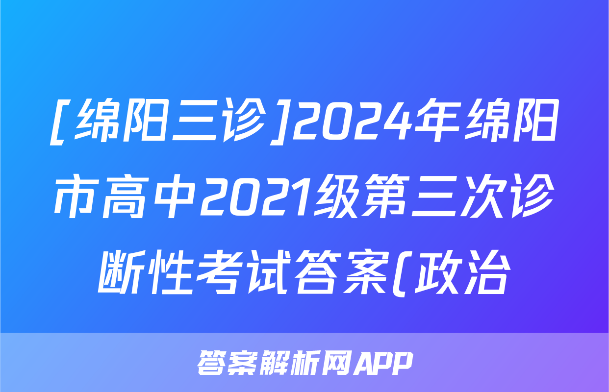 [绵阳三诊]2024年绵阳市高中2021级第三次诊断性考试答案(政治),目前2025-2026衡水金卷答案网已经汇总了[绵阳三诊]2024年绵阳市高中2021级第三次诊断性考试答案(政治)的各科答案和试卷,获取更多{{papers_name}}答案解析,请在关注本站。