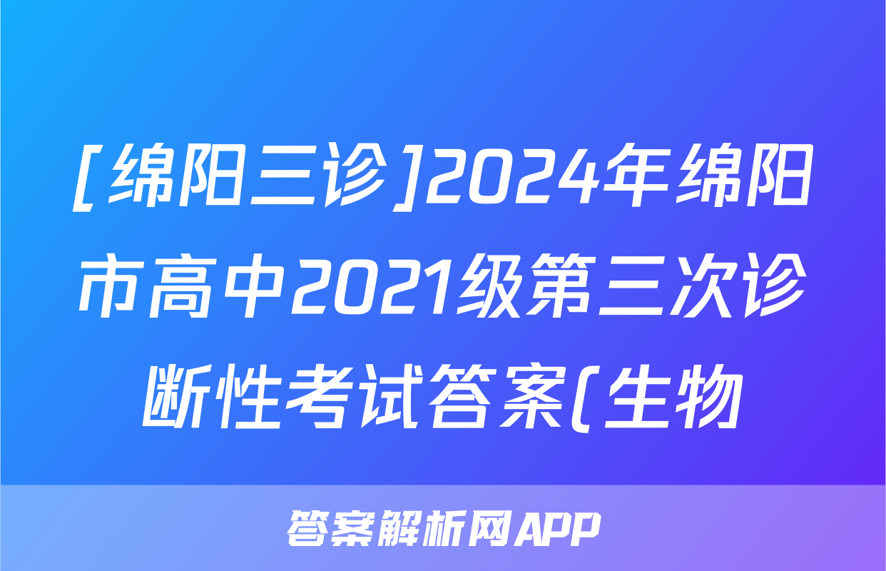 [绵阳三诊]2024年绵阳市高中2021级第三次诊断性考试答案(生物),目前2025-2026衡水金卷答案网已经汇总了[绵阳三诊]2024年绵阳市高中2021级第三次诊断性考试答案(生物)的各科答案和试卷,获取更多{{papers_name}}答案解析,请在关注本站。