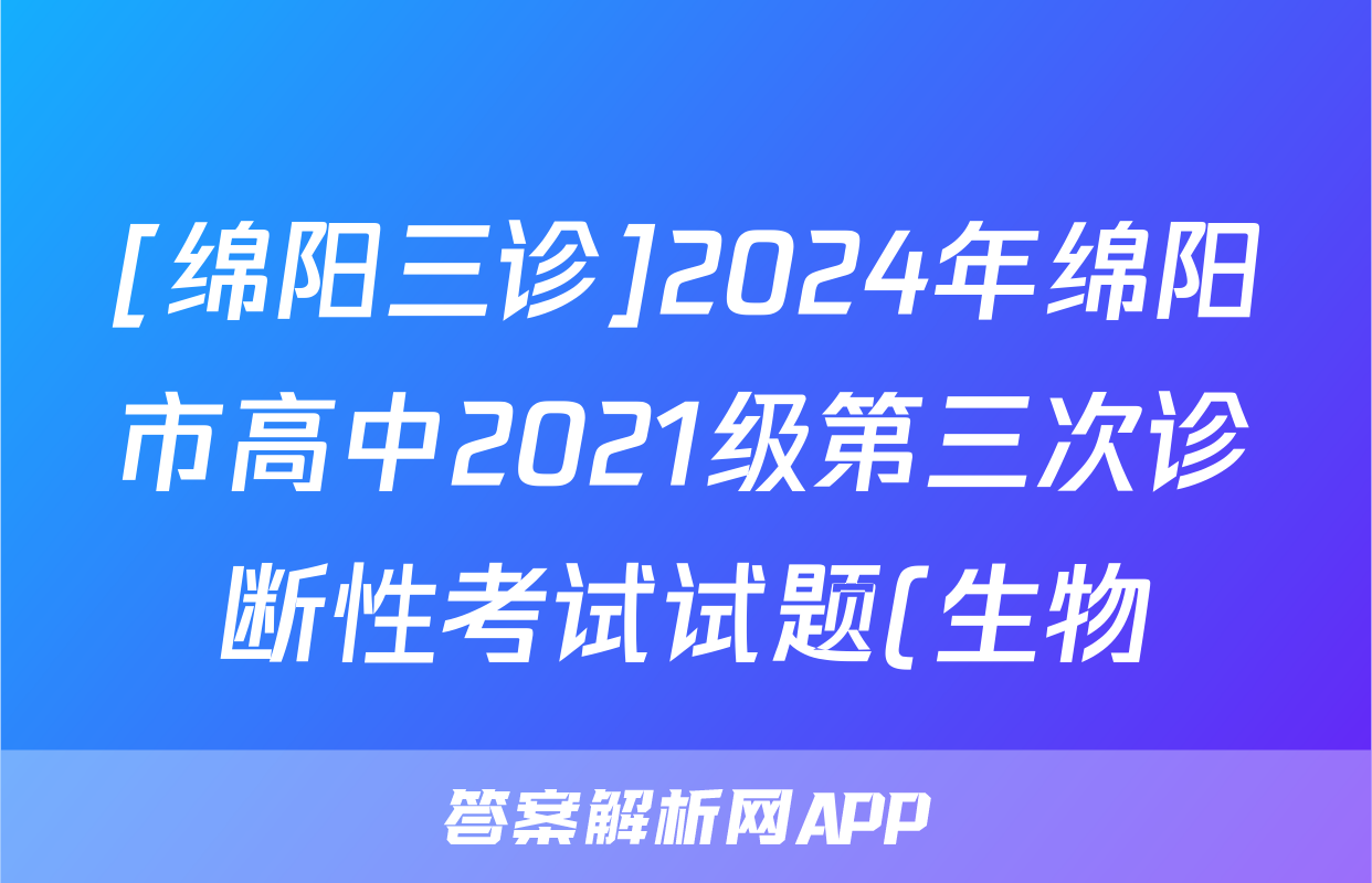 [绵阳三诊]2024年绵阳市高中2021级第三次诊断性考试试题(生物),目前2025-2026衡水金卷答案网已经汇总了[绵阳三诊]2024年绵阳市高中2021级第三次诊断性考试试题(生物)的各科答案和试卷,获取更多{{papers_name}}答案解析,请在关注本站。