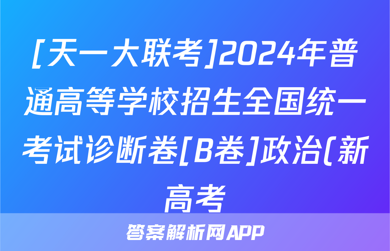 [天一大联考]2024年普通高等学校招生全国统一考试诊断卷[B卷]政治(新高考)答案,目前2025-2026衡水金卷答案网已经汇总了[天一大联考]2024年普通高等学校招生全国统一考试诊断卷[B卷]政治(新高考)答案的各科答案和试卷,获取更多{{papers_name}}答案解析,请在关注本站。