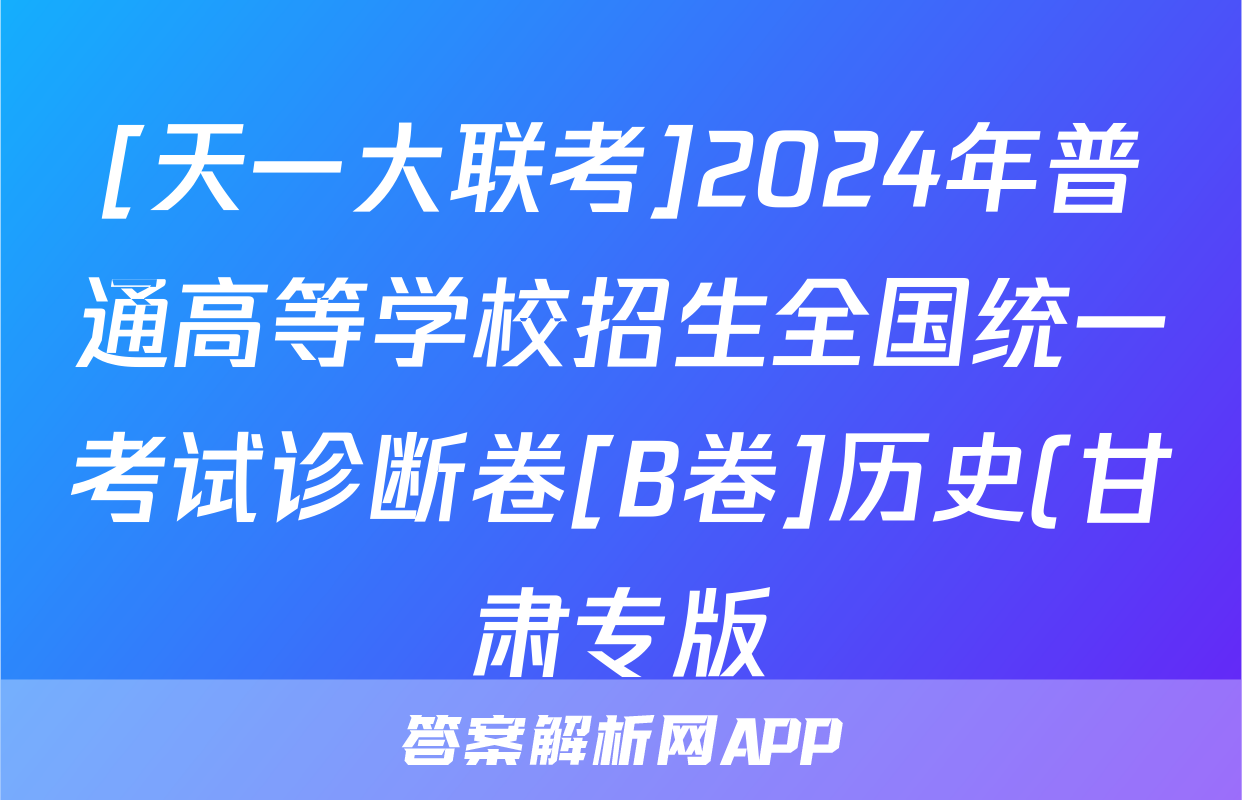 [天一大联考]2024年普通高等学校招生全国统一考试诊断卷[B卷]历史(甘肃专版)试题,目前2025-2026衡水金卷答案网已经汇总了[天一大联考]2024年普通高等学校招生全国统一考试诊断卷[B卷]历史(甘肃专版)试题的各科答案和试卷,获取更多{{papers_name}}答案解析,请在关注本站。