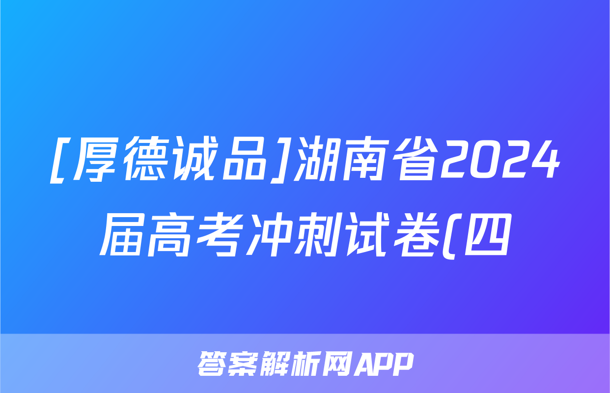 [厚德诚品]湖南省2024届高考冲刺试卷(四)4试题(历史),目前2025-2026衡水金卷答案网已经汇总了[厚德诚品]湖南省2024届高考冲刺试卷(四)4试题(历史)的各科答案和试卷,获取更多{{papers_name}}答案解析,请在关注本站。