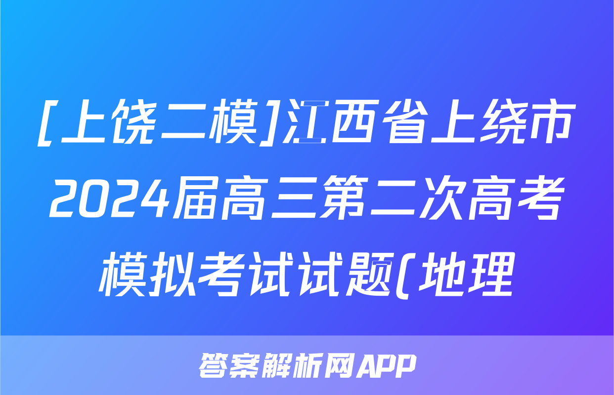 [上饶二模]江西省上绕市2024届高三第二次高考模拟考试试题(地理),目前2025-2026衡水金卷答案网已经汇总了[上饶二模]江西省上绕市2024届高三第二次高考模拟考试试题(地理)的各科答案和试卷,获取更多{{papers_name}}答案解析,请在关注本站。