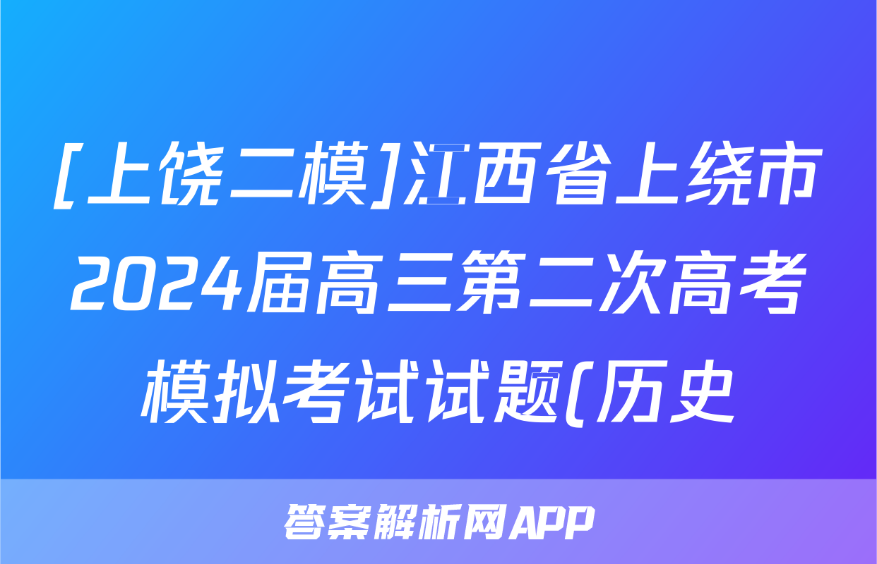 [上饶二模]江西省上绕市2024届高三第二次高考模拟考试试题(历史),目前2025-2026衡水金卷答案网已经汇总了[上饶二模]江西省上绕市2024届高三第二次高考模拟考试试题(历史)的各科答案和试卷,获取更多{{papers_name}}答案解析,请在关注本站。