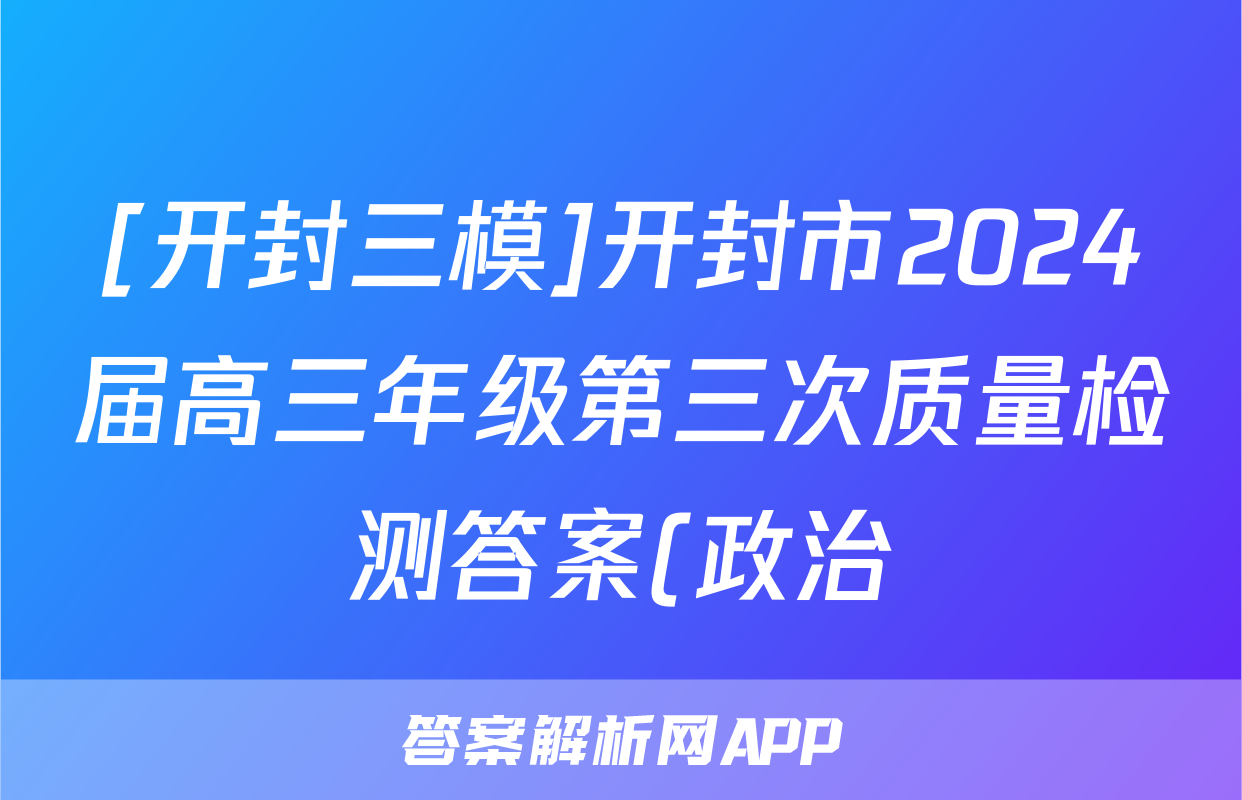 [开封三模]开封市2024届高三年级第三次质量检测答案(政治),目前2025-2026衡水金卷答案网已经汇总了[开封三模]开封市2024届高三年级第三次质量检测答案(政治)的各科答案和试卷,获取更多{{papers_name}}答案解析,请在关注本站。