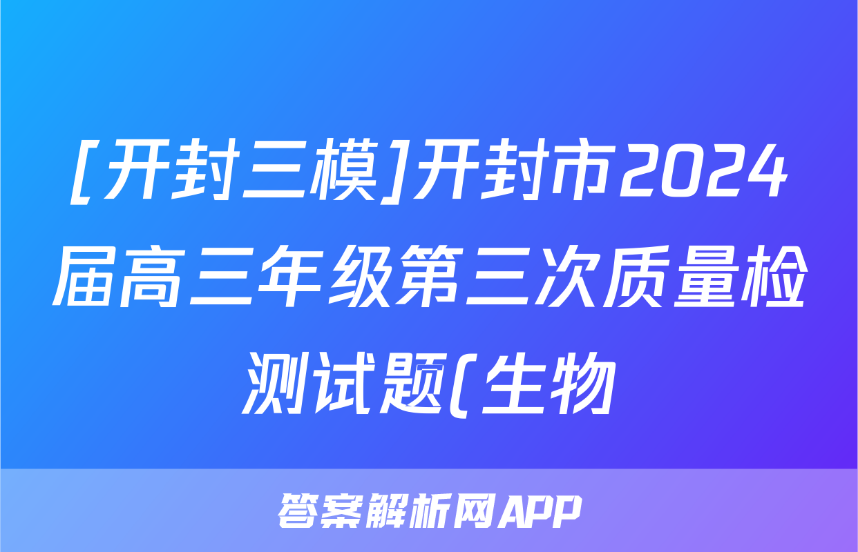 [开封三模]开封市2024届高三年级第三次质量检测试题(生物),目前2025-2026衡水金卷答案网已经汇总了[开封三模]开封市2024届高三年级第三次质量检测试题(生物)的各科答案和试卷,获取更多{{papers_name}}答案解析,请在关注本站。