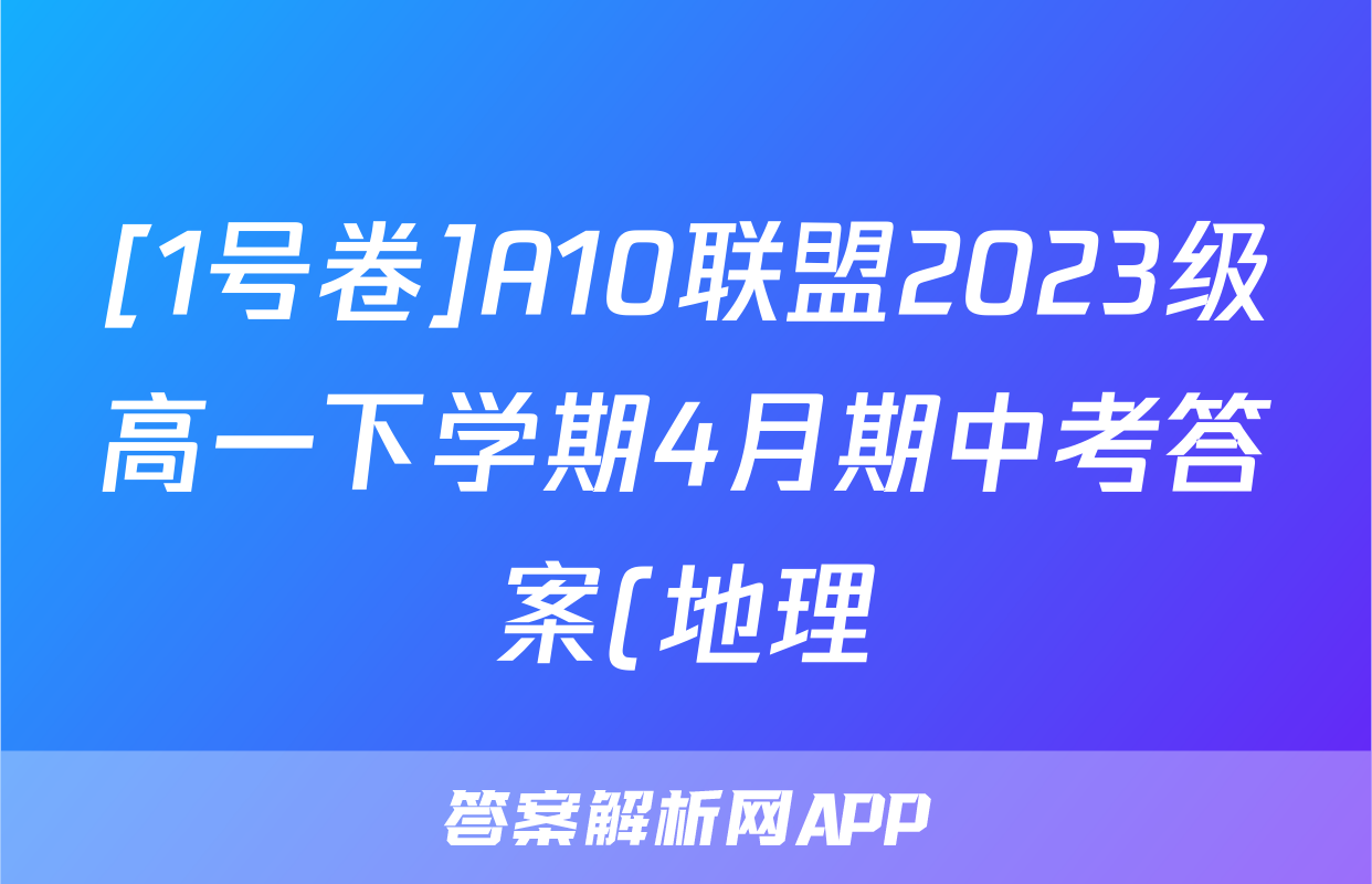 [1号卷]A10联盟2023级高一下学期4月期中考答案(地理),目前2025-2026衡水金卷答案网已经汇总了[1号卷]A10联盟2023级高一下学期4月期中考答案(地理)的各科答案和试卷,获取更多{{papers_name}}答案解析,请在关注本站。