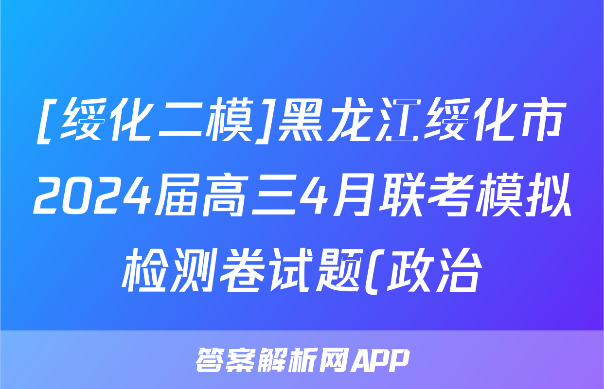 [绥化二模]黑龙江绥化市2024届高三4月联考模拟检测卷试题(政治),目前2025-2026衡水金卷答案网已经汇总了[绥化二模]黑龙江绥化市2024届高三4月联考模拟检测卷试题(政治)的各科答案和试卷,获取更多{{papers_name}}答案解析,请在关注本站。