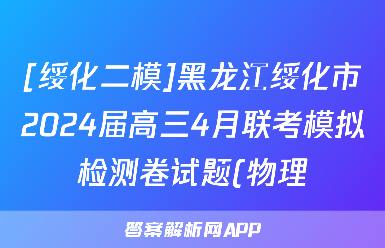 [绥化二模]黑龙江绥化市2024届高三4月联考模拟检测卷试题(物理),目前2025-2026衡水金卷答案网已经汇总了[绥化二模]黑龙江绥化市2024届高三4月联考模拟检测卷试题(物理)的各科答案和试卷,获取更多{{papers_name}}答案解析,请在关注本站。