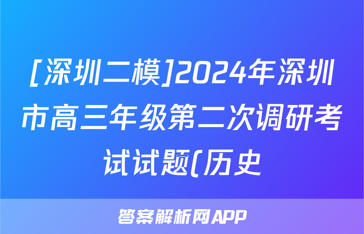[深圳二模]2024年深圳市高三年级第二次调研考试试题(历史),目前2025-2026衡水金卷答案网已经汇总了[深圳二模]2024年深圳市高三年级第二次调研考试试题(历史)的各科答案和试卷,获取更多{{papers_name}}答案解析,请在关注本站。