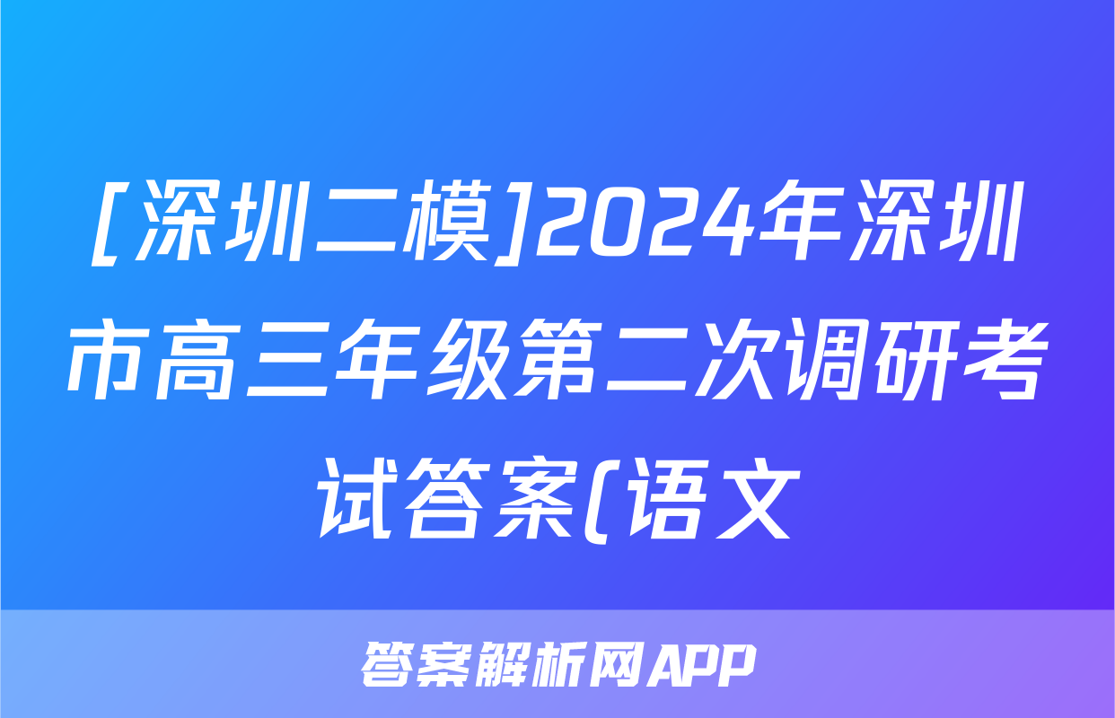 [深圳二模]2024年深圳市高三年级第二次调研考试答案(语文),目前2025-2026衡水金卷答案网已经汇总了[深圳二模]2024年深圳市高三年级第二次调研考试答案(语文)的各科答案和试卷,获取更多{{papers_name}}答案解析,请在关注本站。